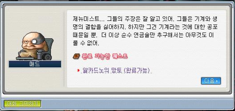 보상: 알카드노 망토 1개, 경험치 3500