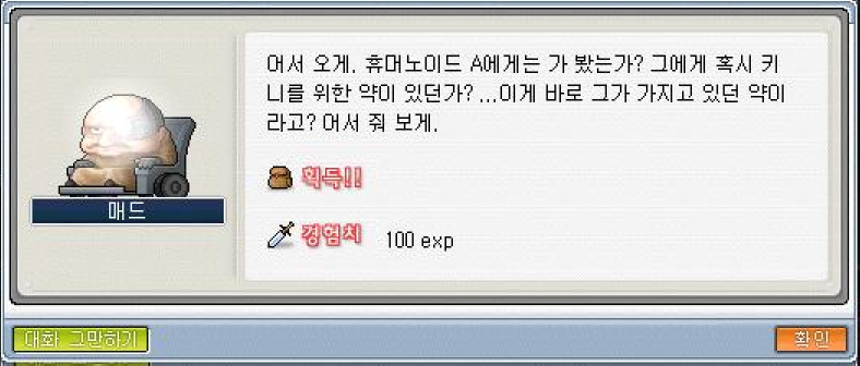 보상: 경험치 100, 퀘스트 드랭과 휴머노이드A 수행가능